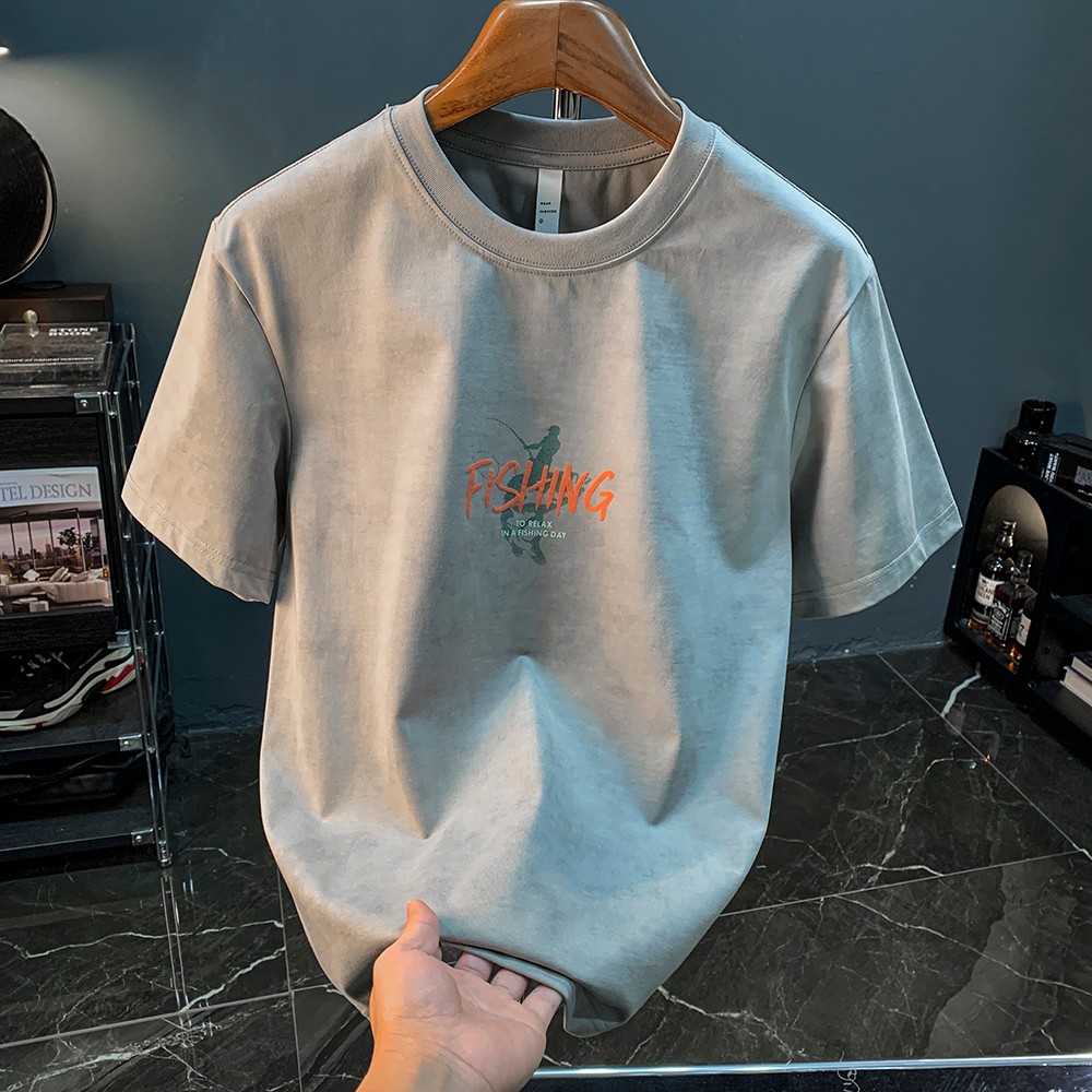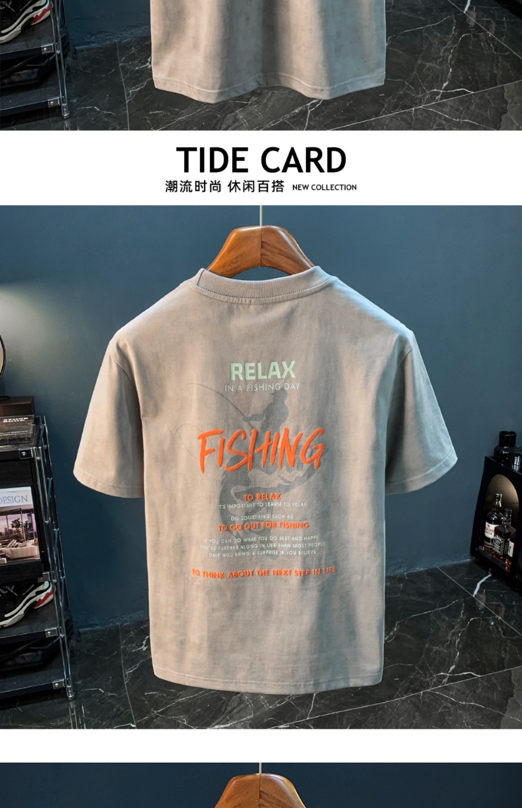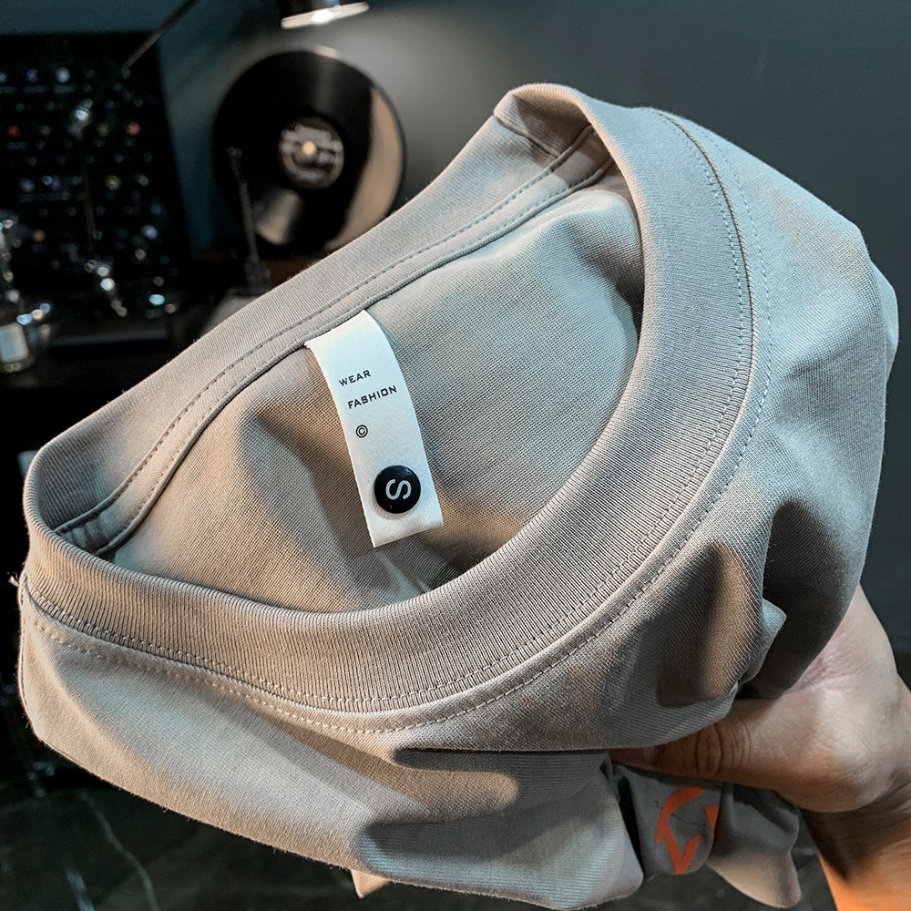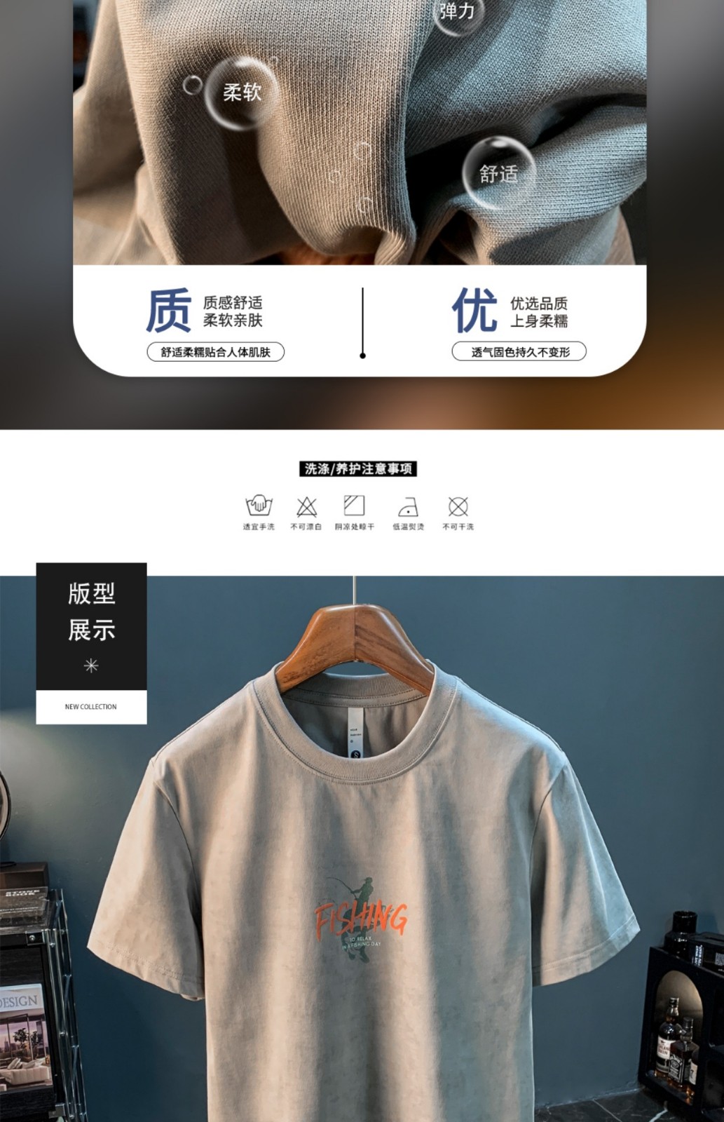 式宽松短袖T恤男重磅潮流印花夏季上衣体恤休闲落肩半袖男衣服