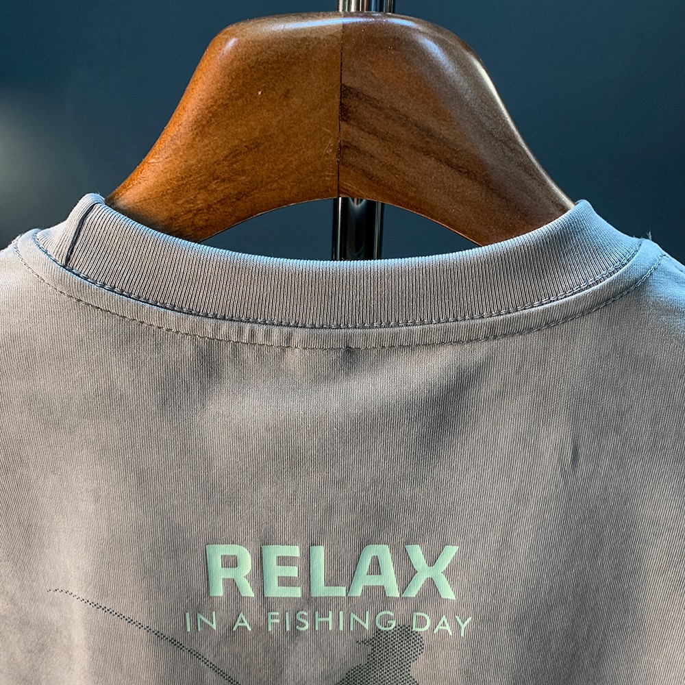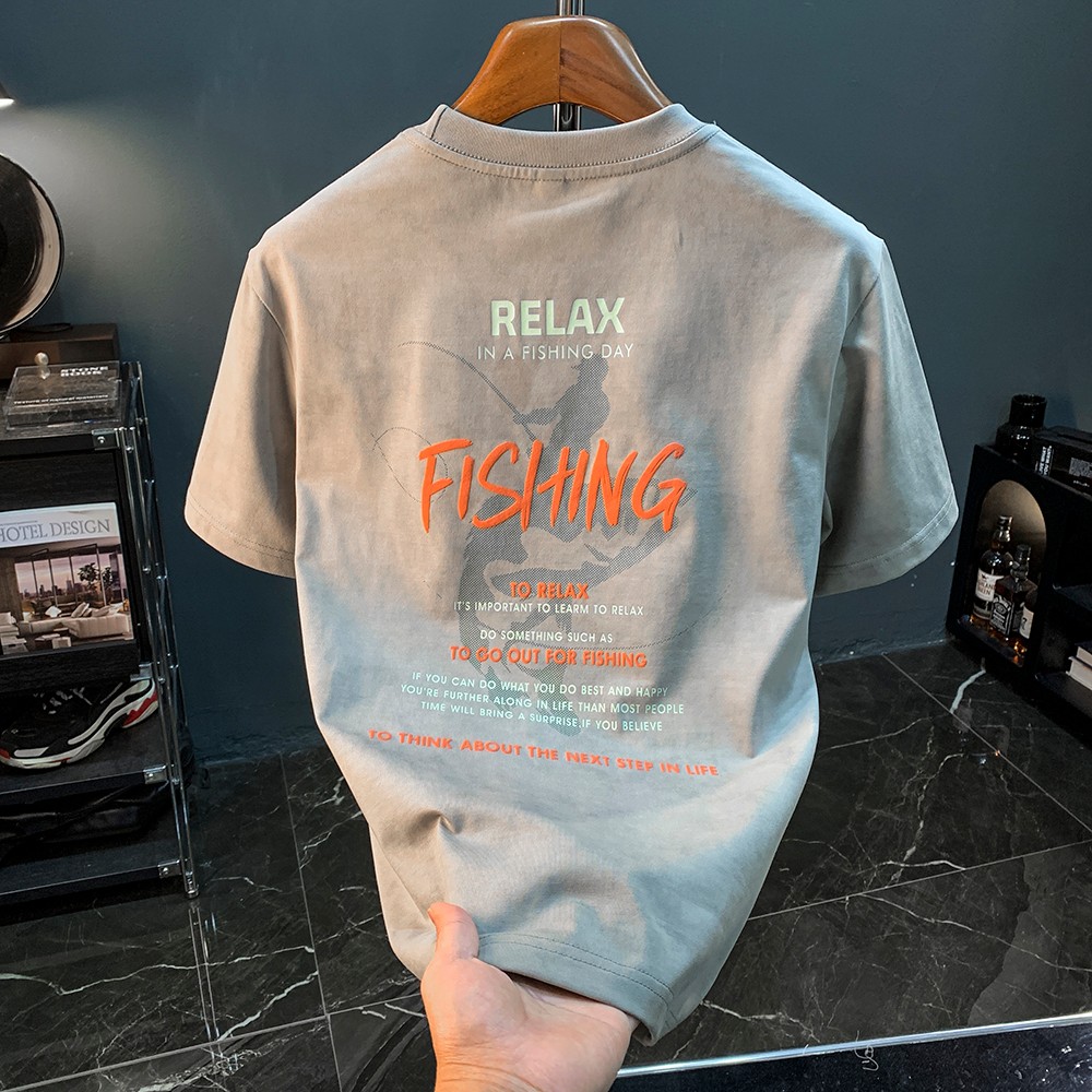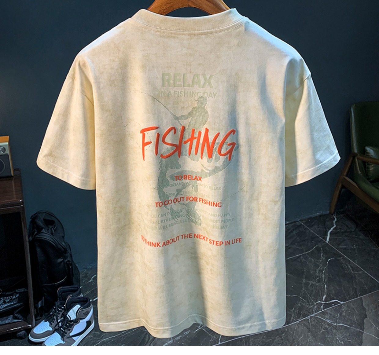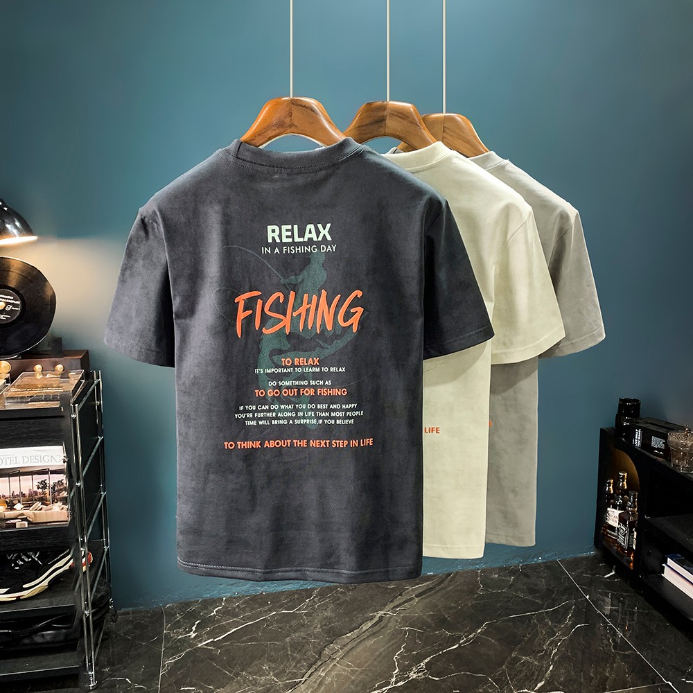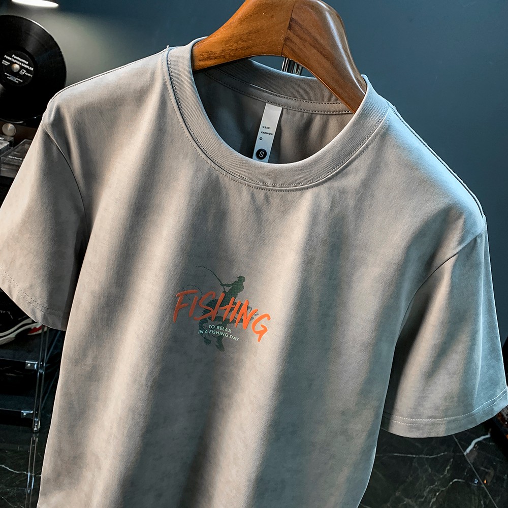 式宽松短袖T恤男重磅潮流印花夏季上衣体恤休闲落肩半袖男衣服