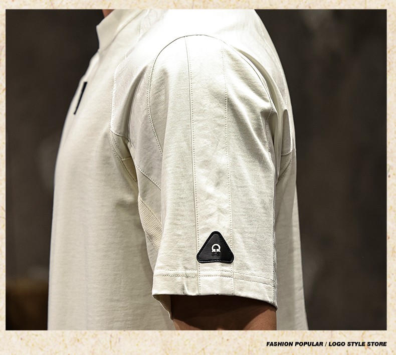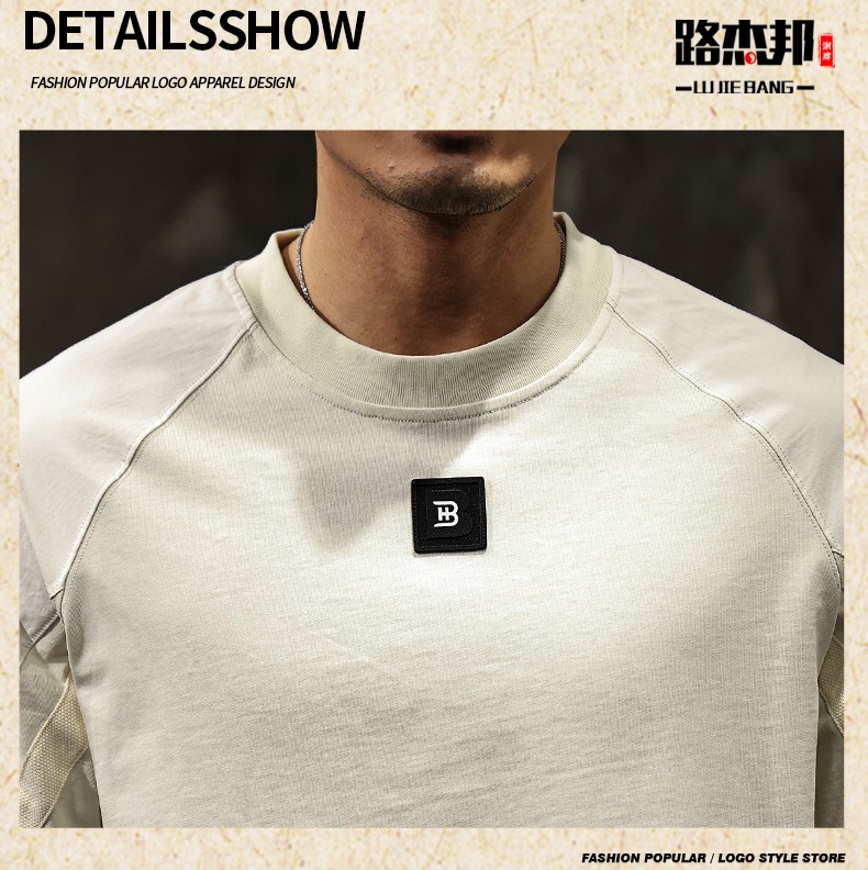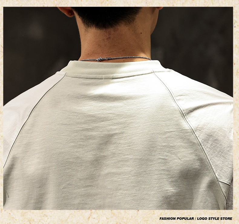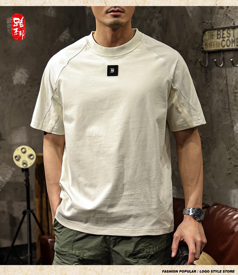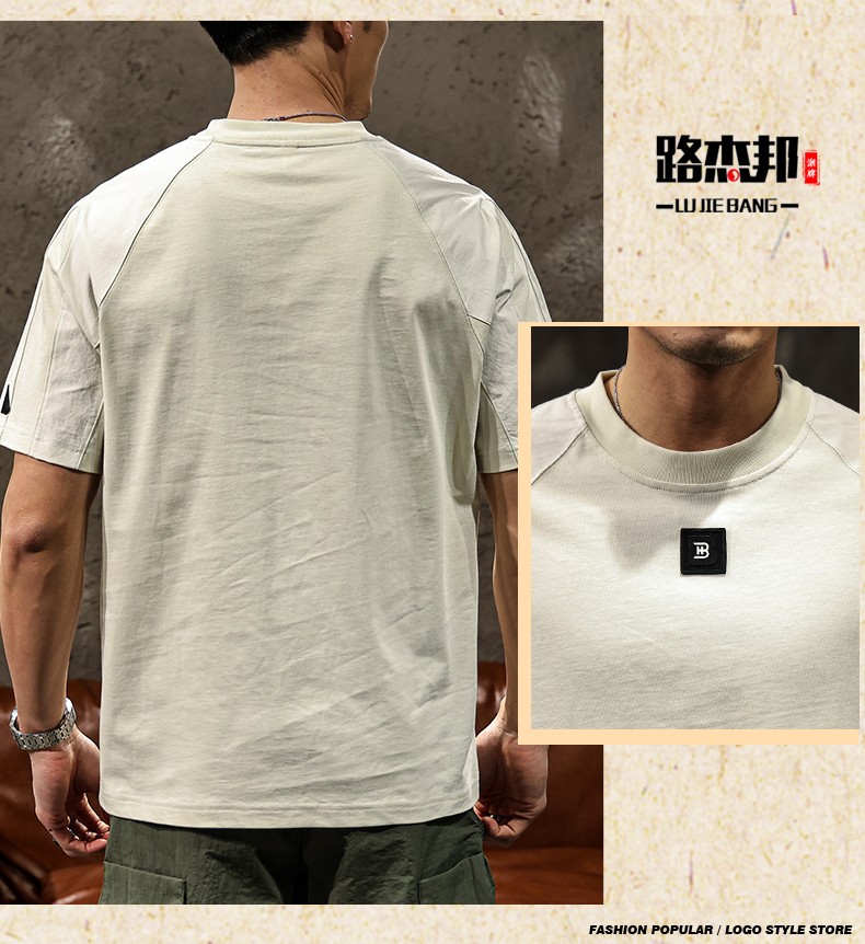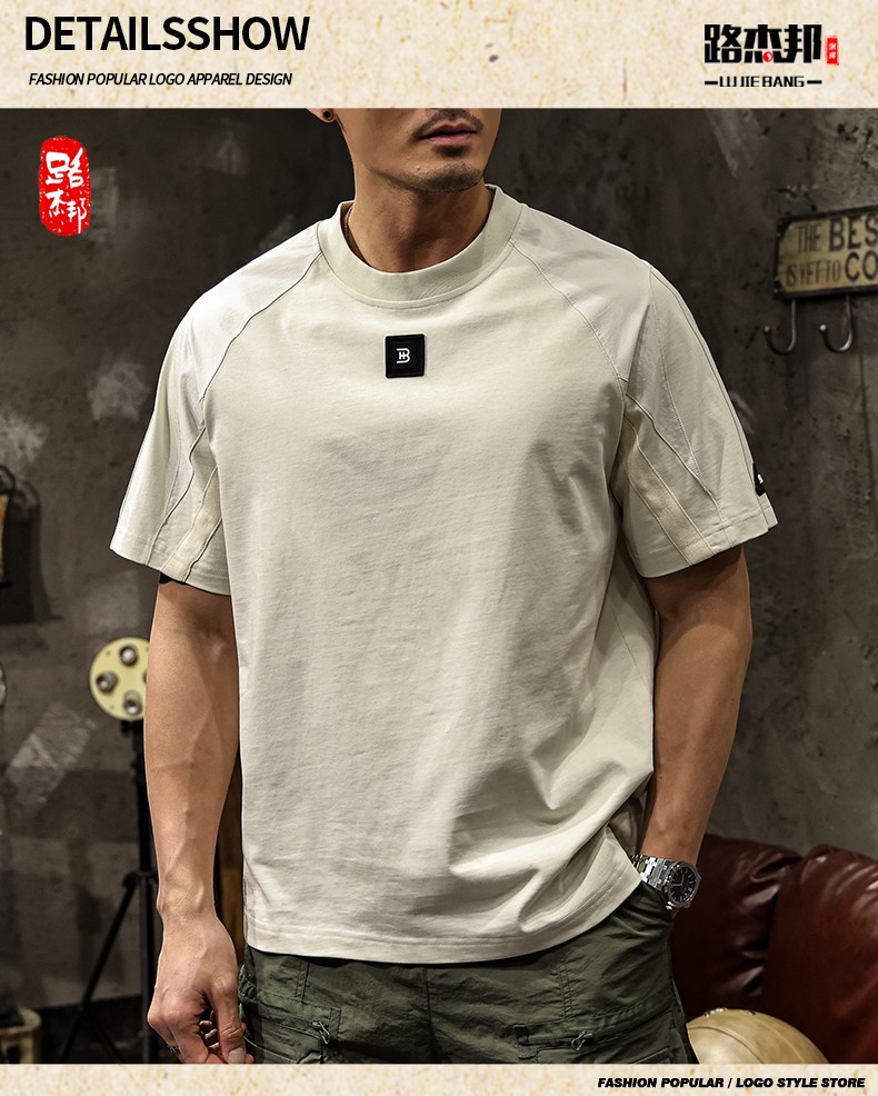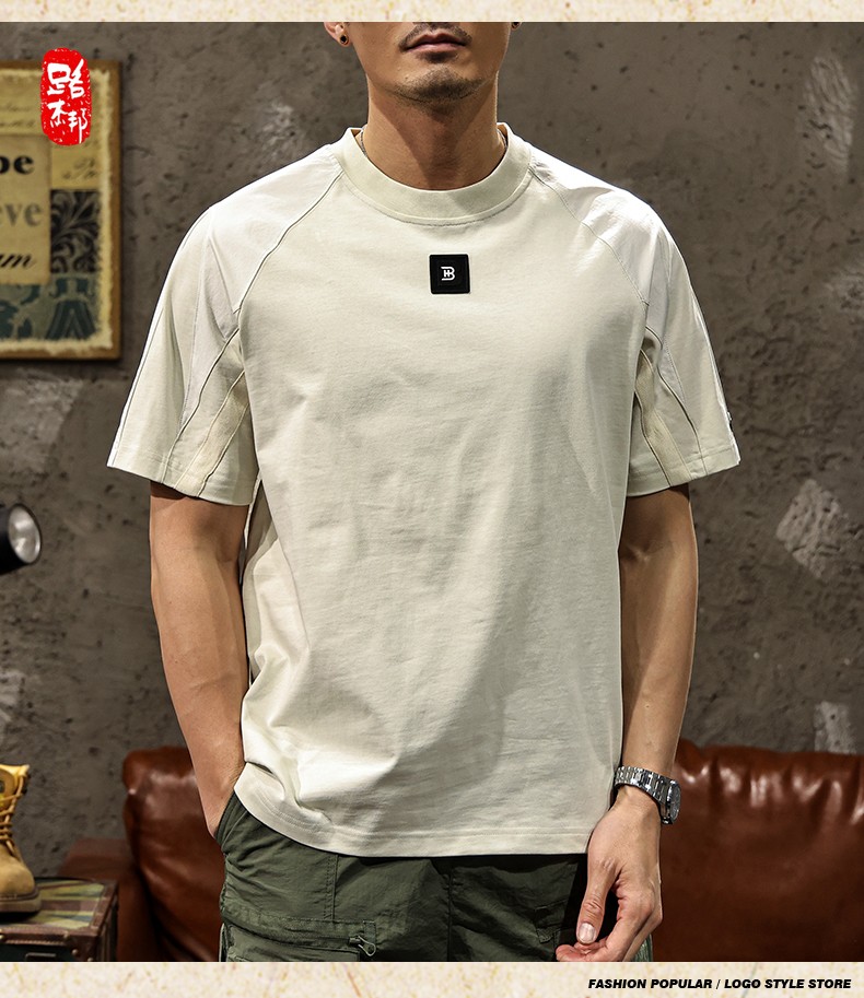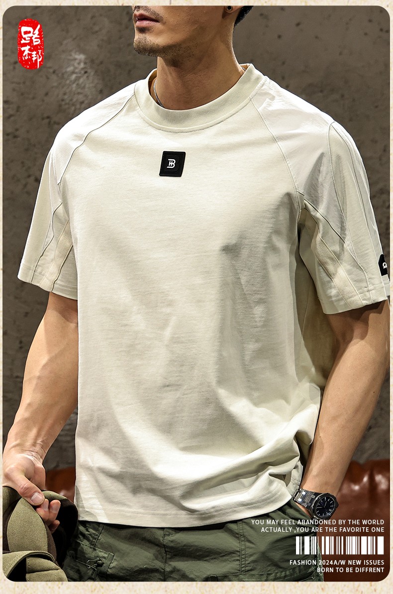 高级感拼接短袖T恤男夏季新款美式潮牌户外宽松圆领印花纯棉体恤