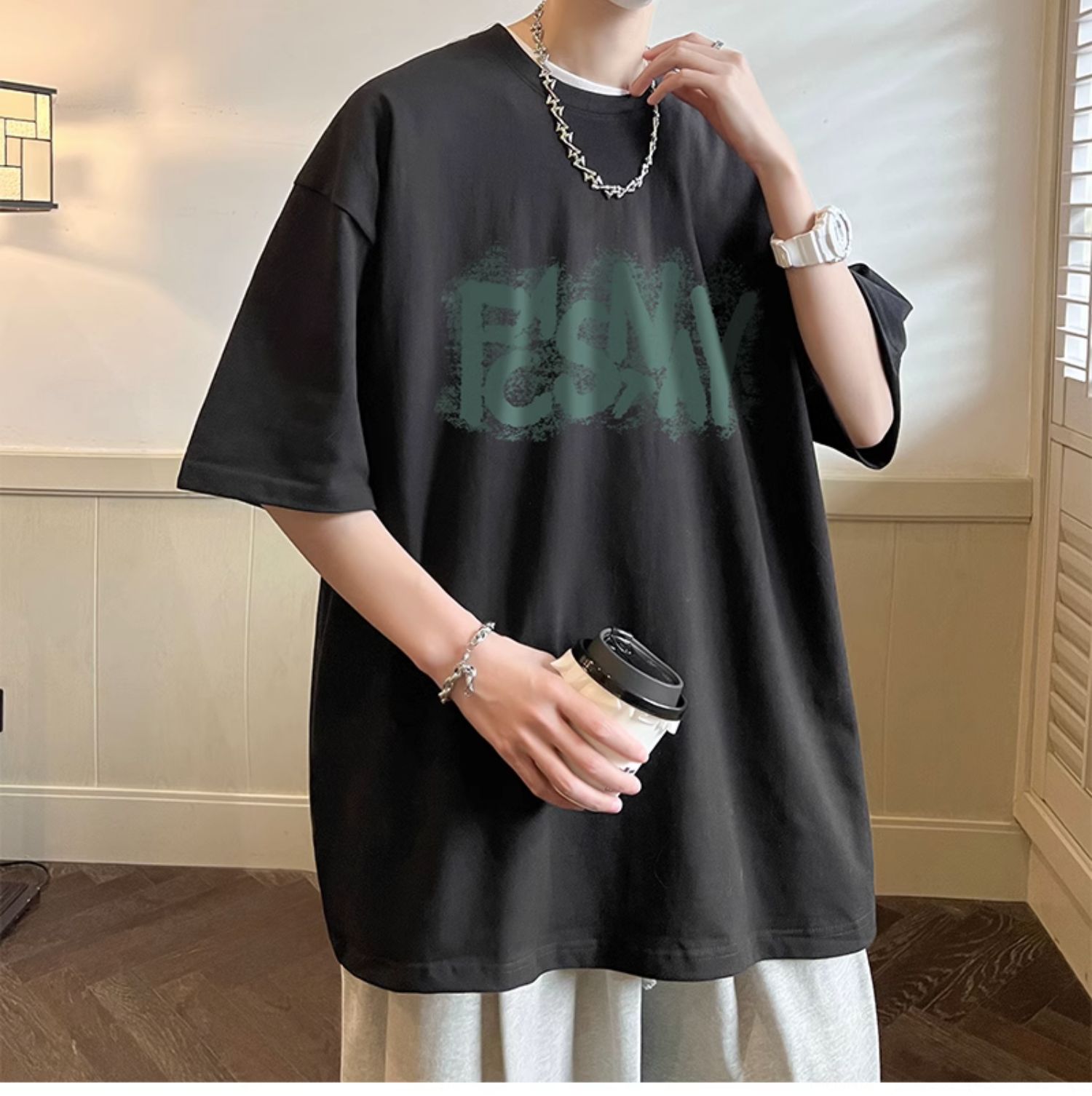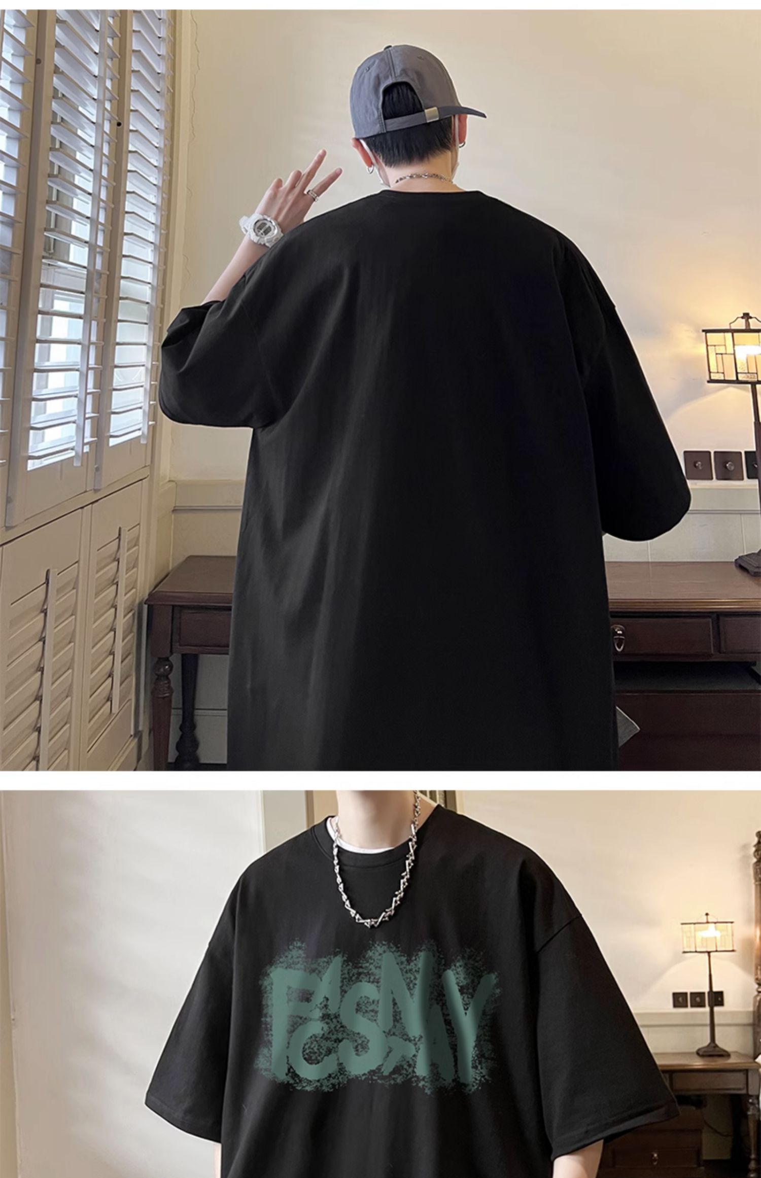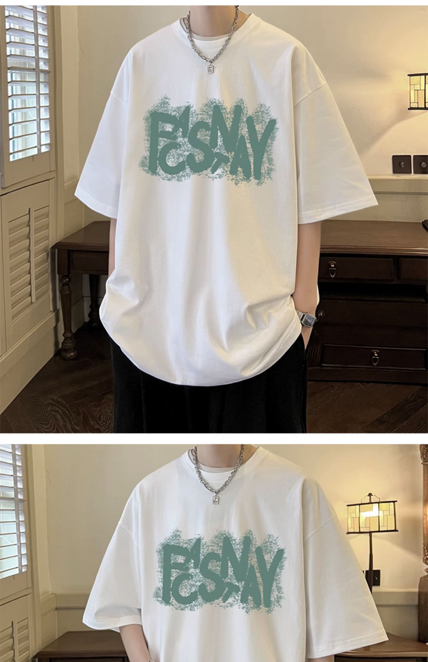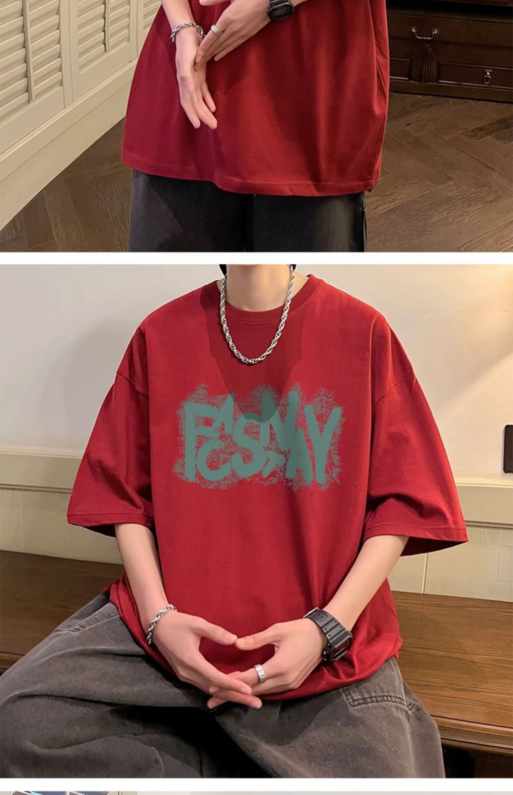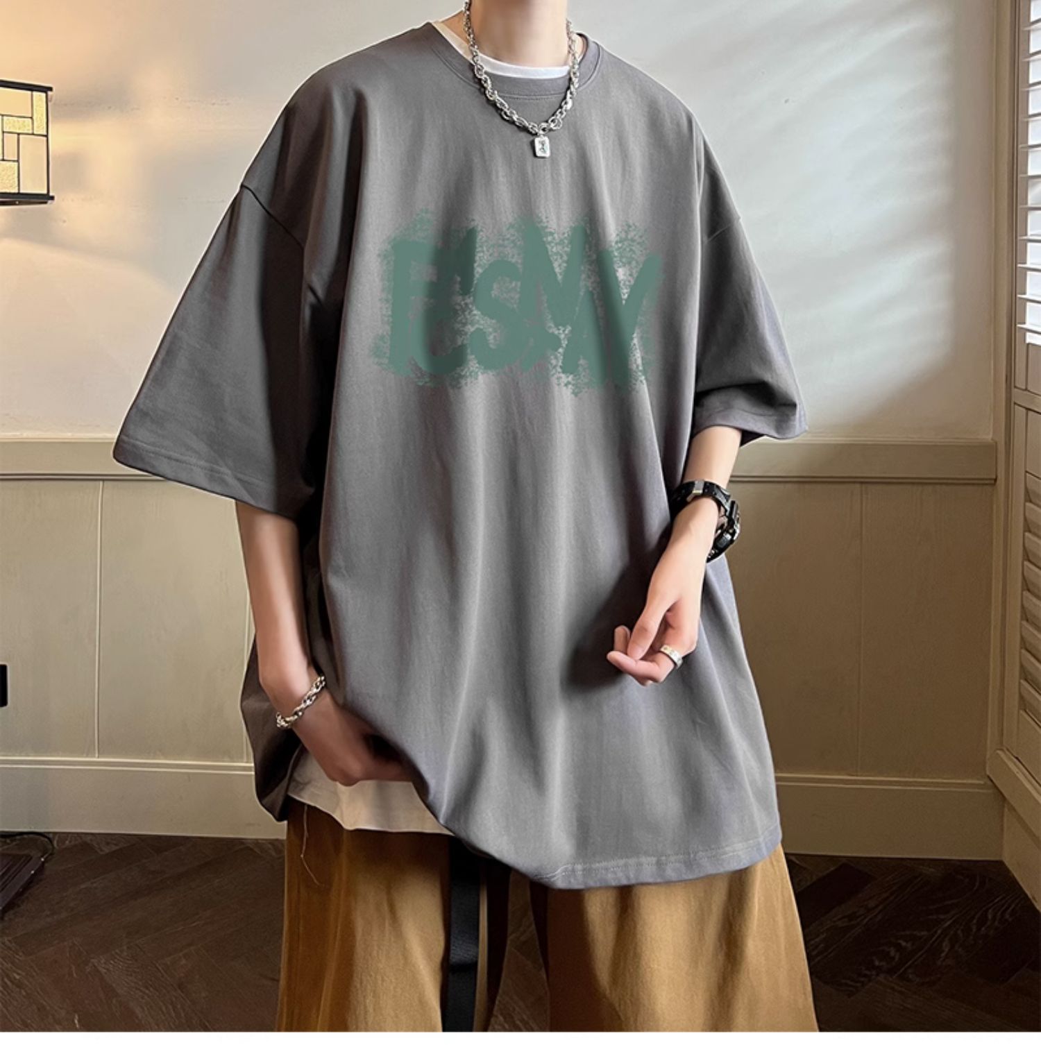 式宽松短袖T恤男重磅潮流印花夏季上衣体恤休闲落肩半袖男衣服...