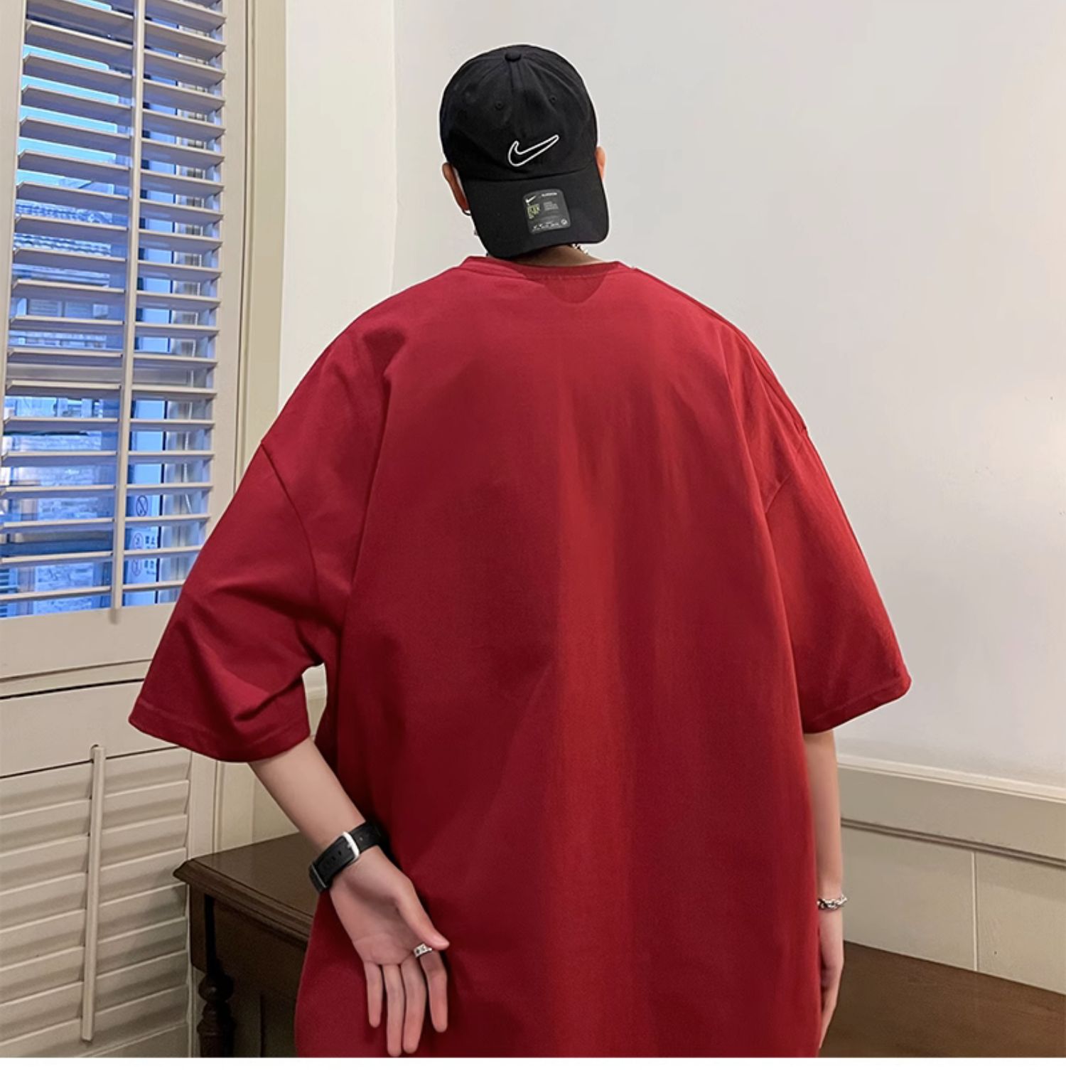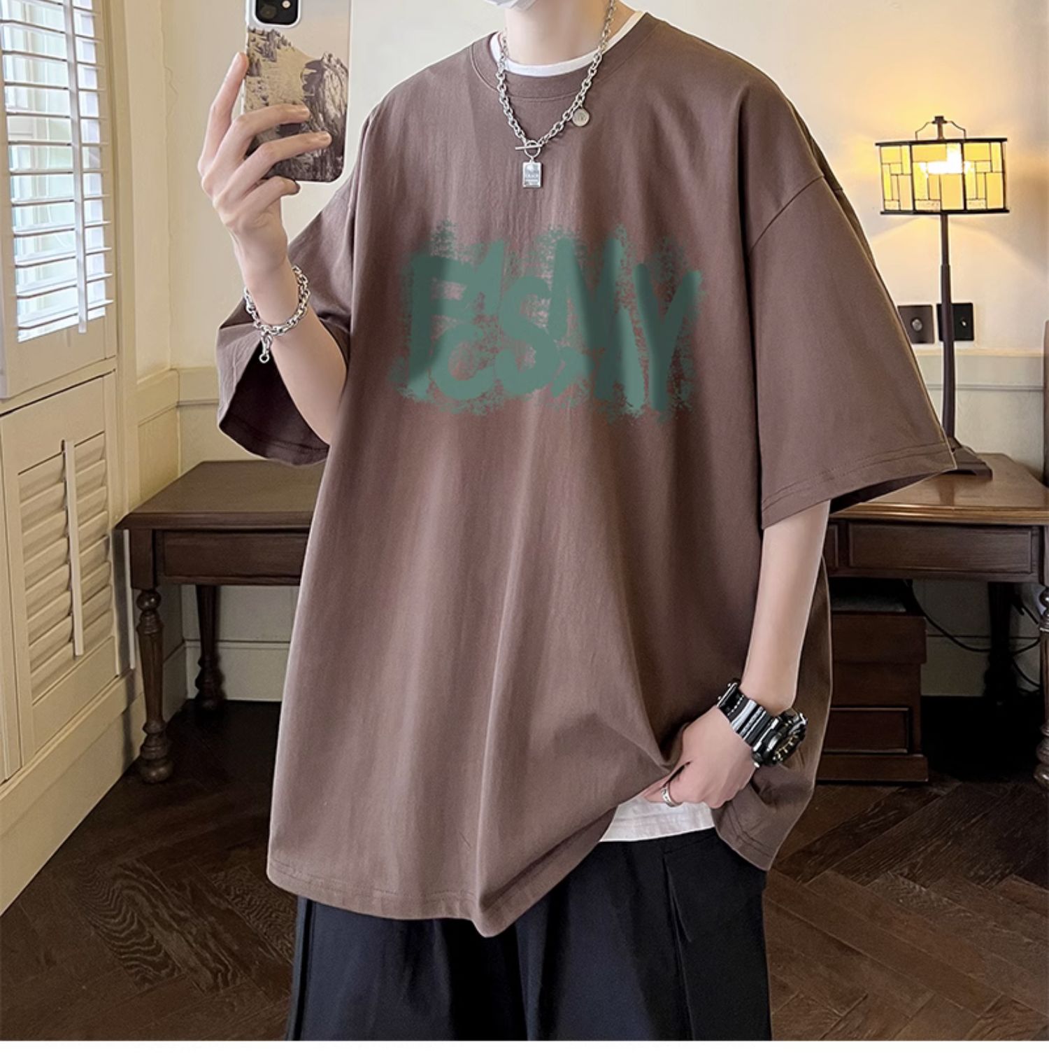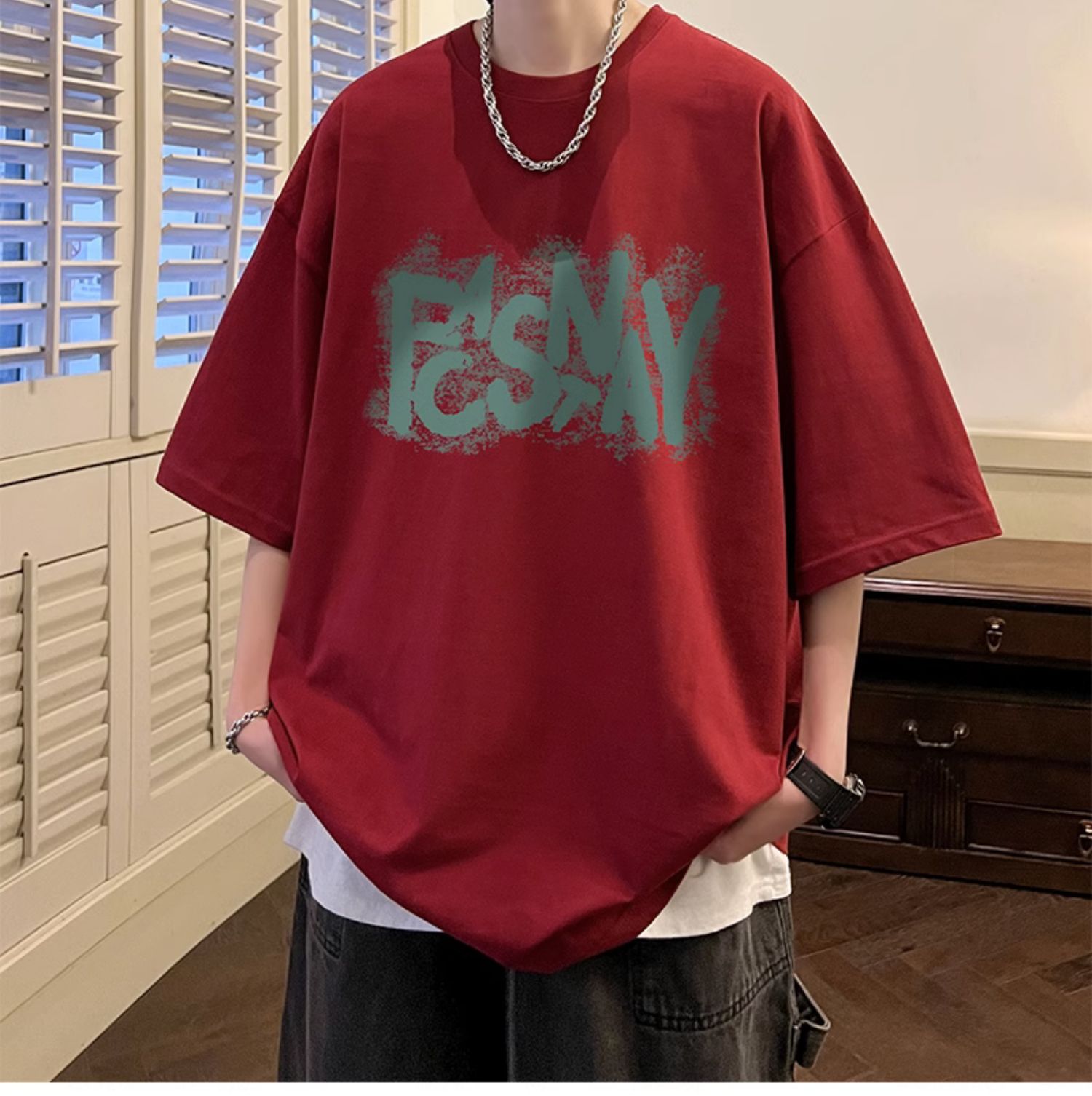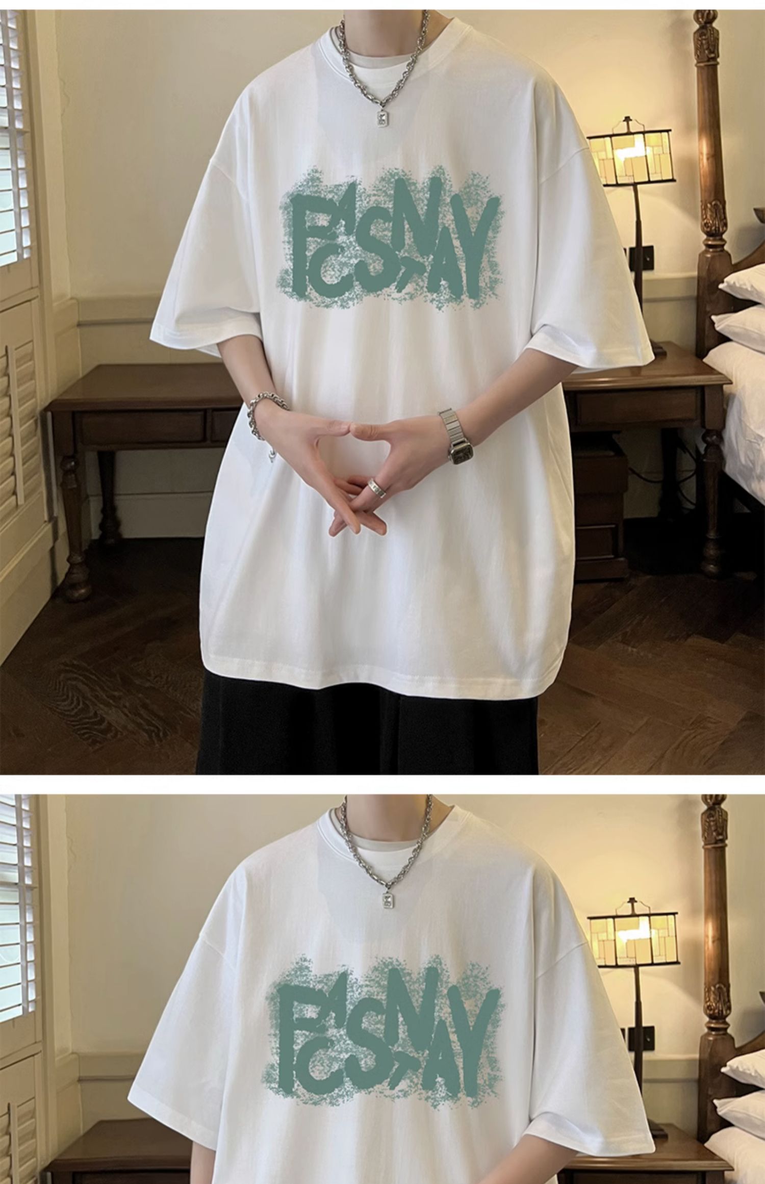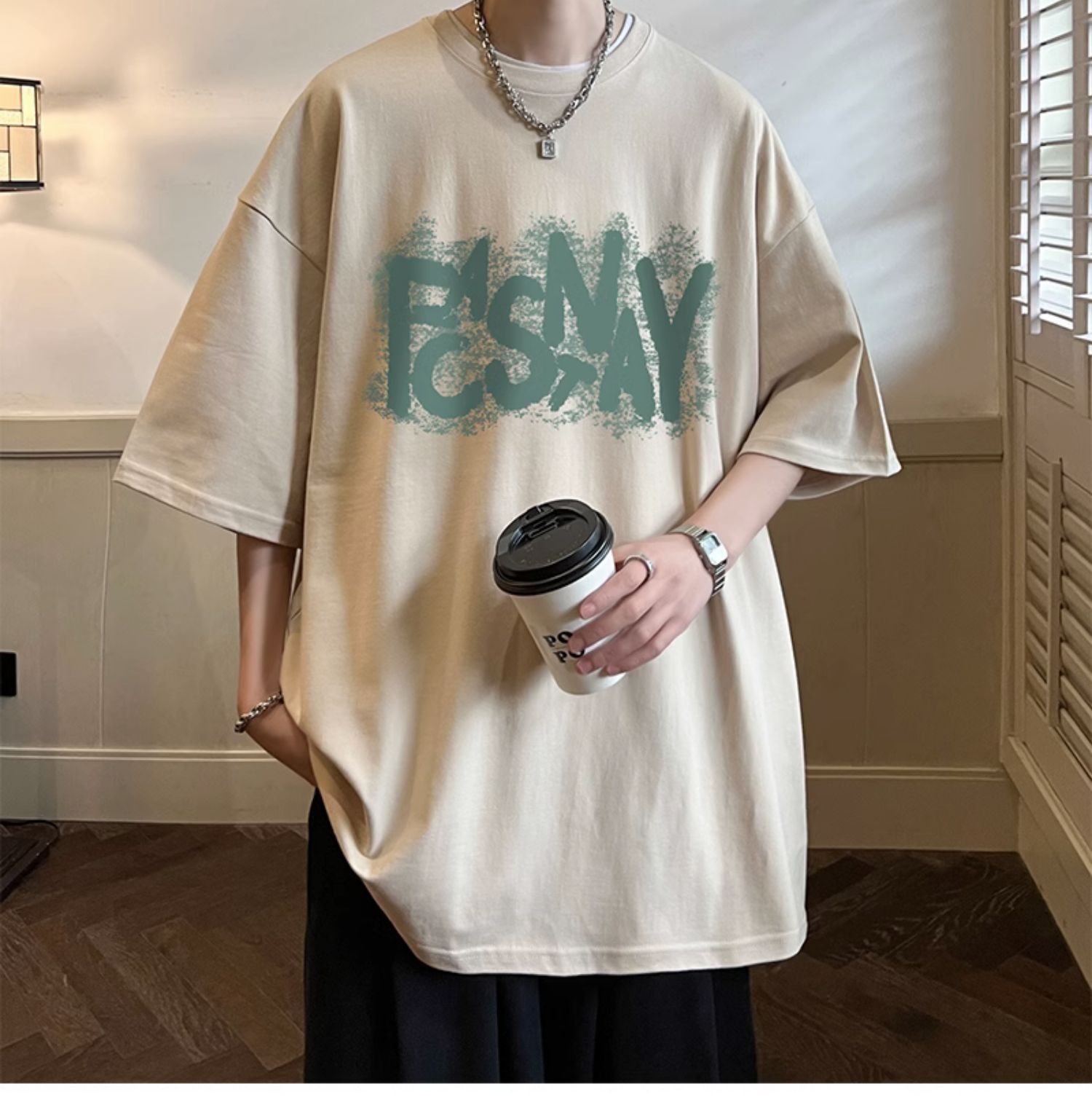 式宽松短袖T恤男重磅潮流印花夏季上衣体恤休闲落肩半袖男衣服...